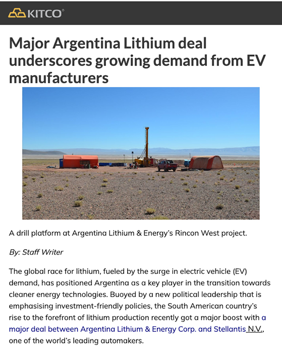 Argentina Lithium Announces US$90 Million Investment by Stellantis in ARS$ Equivalent