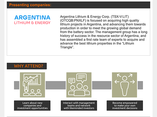 Argentina Lithium to Present at the Emerging Growth Conference and Invites Individual and Institutional Investors as well as Advisors and Analysts, to Attend Its Real-Time, Interactive Presentation