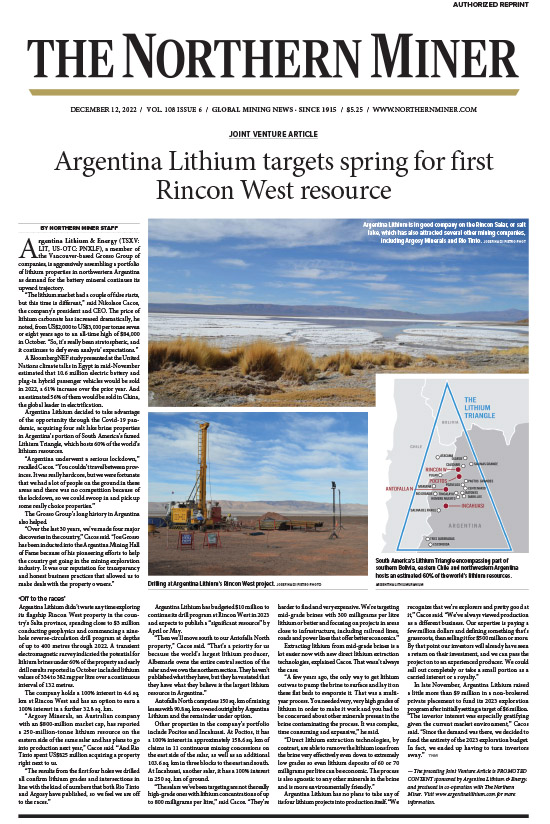 Argentina Lithium Further Delineates Concentrated Lithium Brine Zone at Rincon West Project